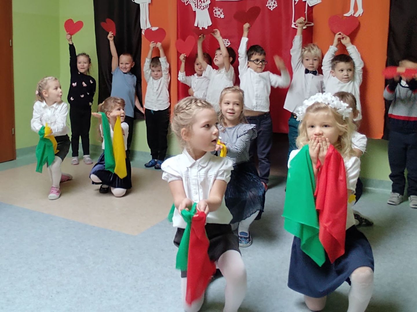 14 października - Święto Edukacji Narodowej był to szczególny dzień dla wszystkich pracowników Przedszkola w Różycy. Piękna dekoracja i wspaniały program artystyczny w wykonaniu dzieci z grupy „Motylki”, to wszystko układało się w jedną, niepowtarzalną całość mającą na celu uczczenie pracy nauczycieli oraz wszystkich innych pracowników przedszkola. Mali artyści poprzez taniec, piosenki i wiersze wyrazili swoją wdzięczność za miłość, serce, opiekę i trud włożony w ich wychowanie i edukację, co wzbudziło zachwyt i wzruszenie na twarzach zgromadzonych gości.
