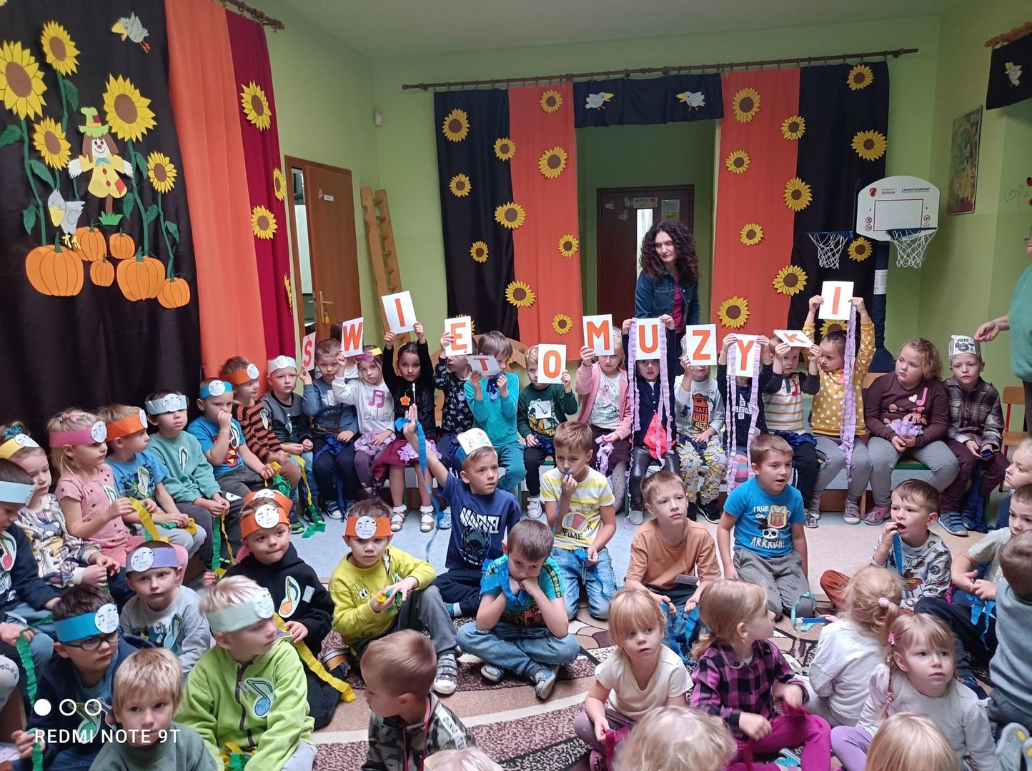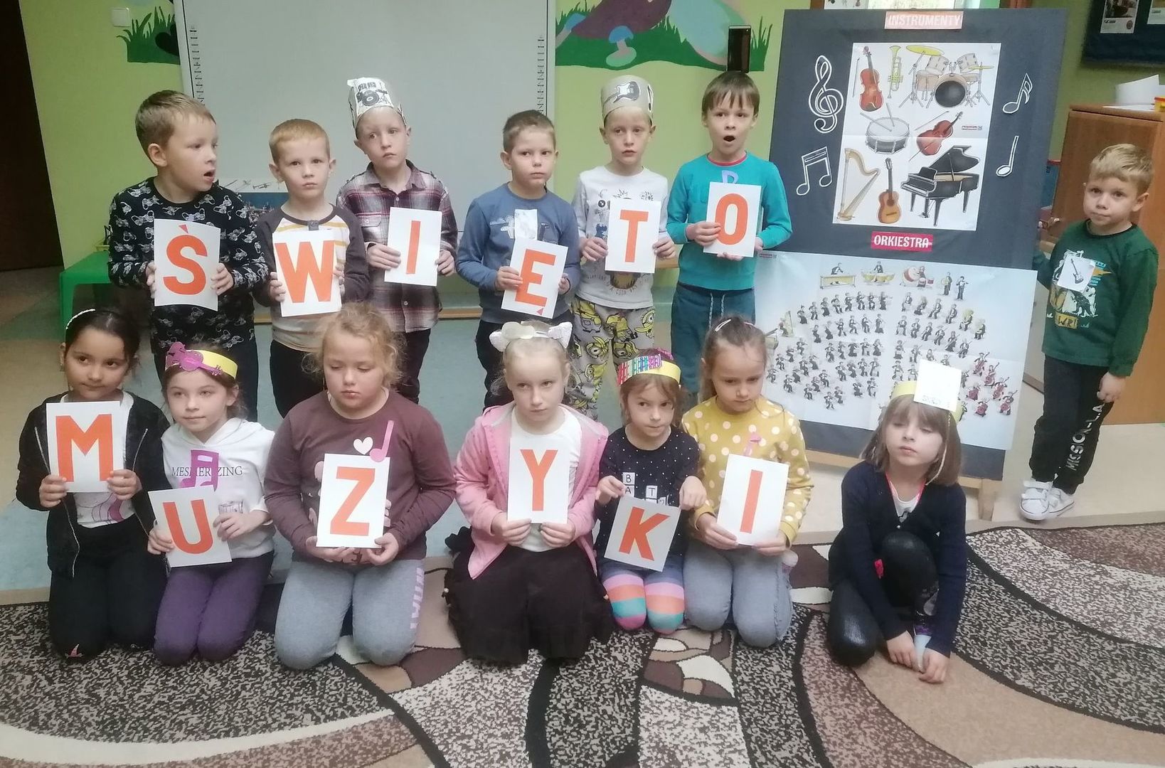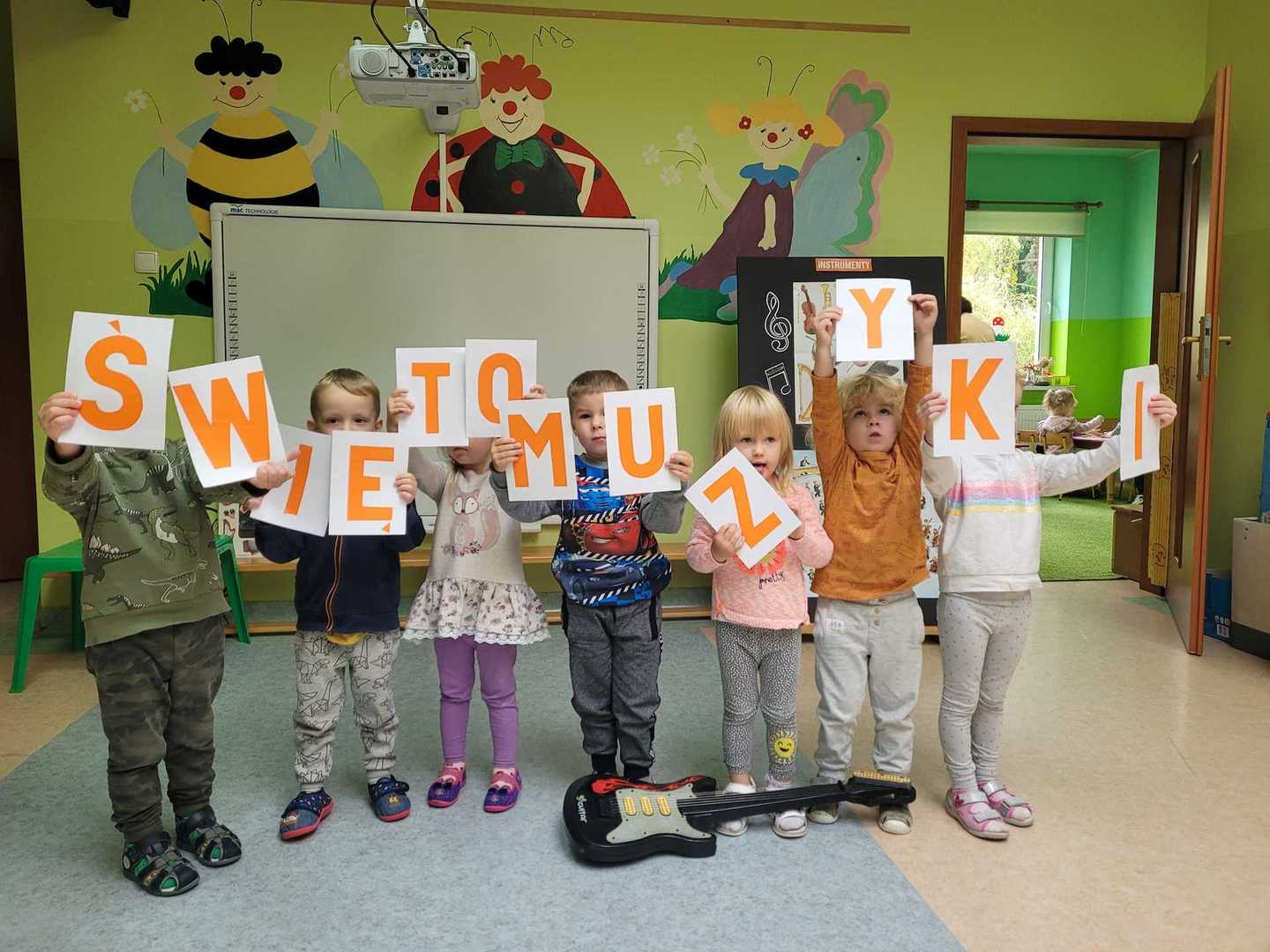 3 października z okazji Światowego Dnia Muzyki przedszkolaki uczestniczyły w w wielu zabawach muzycznych. Tańczyły, rozpoznawały instrumenty po ich brzmieniu, słuchały różnych utworów muzycznych, śpiewały oraz wykonywały różne prace plastyczne związane z tematem.