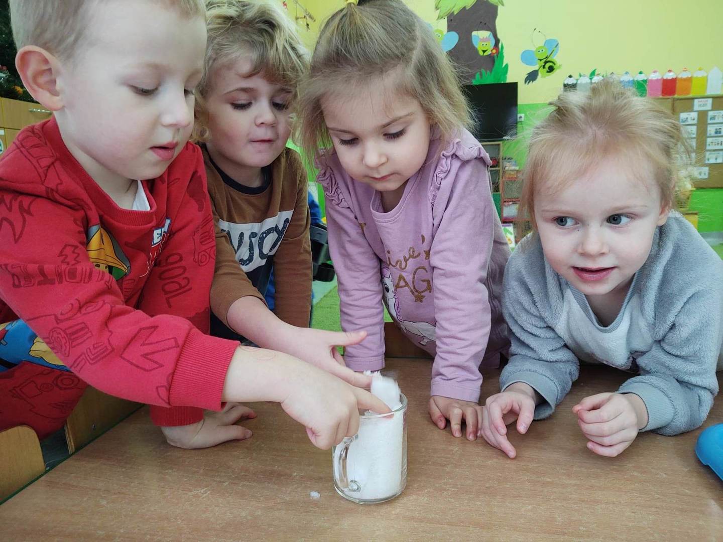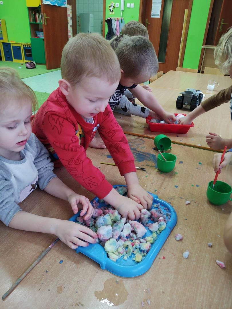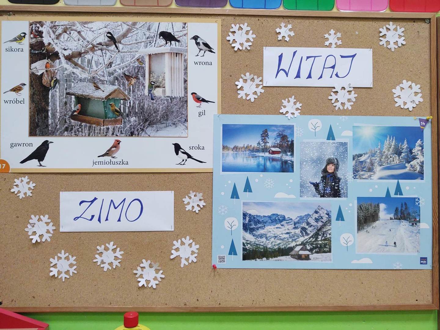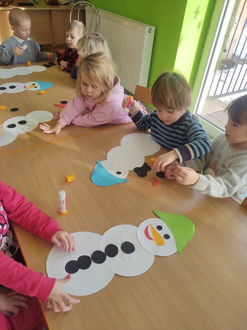 22 grudnia dzieci z grupy "Pszczółki" witały zimę. Przedszkolaki rozwiązywały zimowe zagadki oraz słuchały piosenek o zimie. Uczestniczyły w doświadczeniu i obserwowały czy śnieg jest czysty oraz robiły kolorowe, śnieżne kulki. "Lepiły" papierowe bałwanki, którymi udekorowały przedszkolna salę.