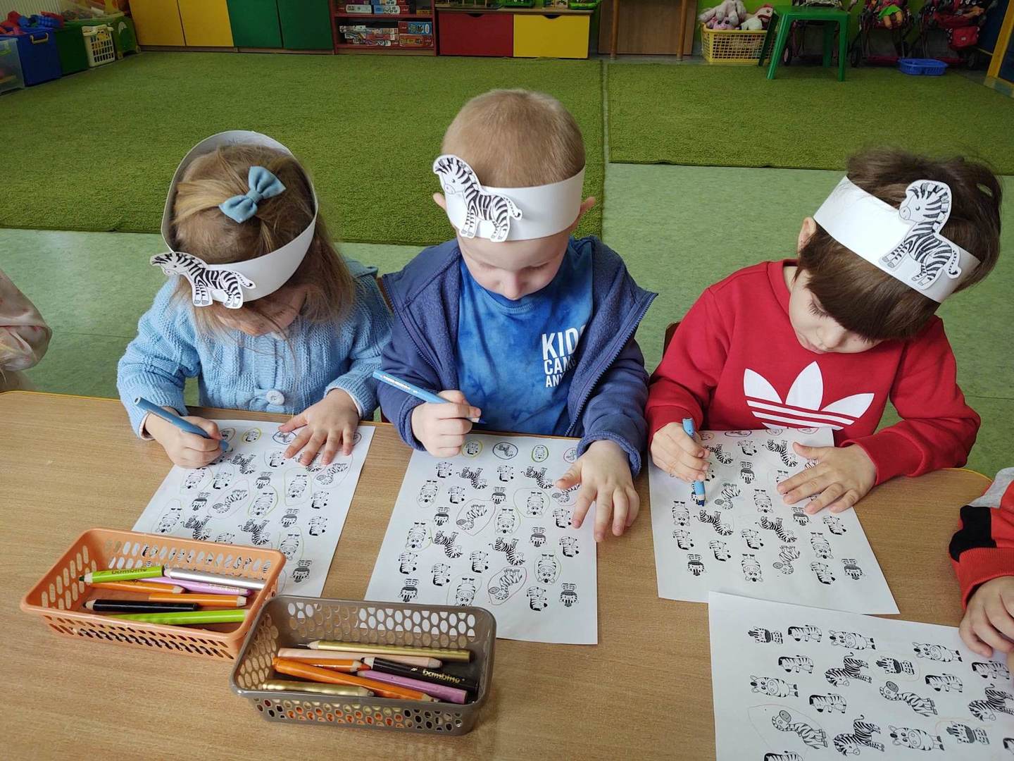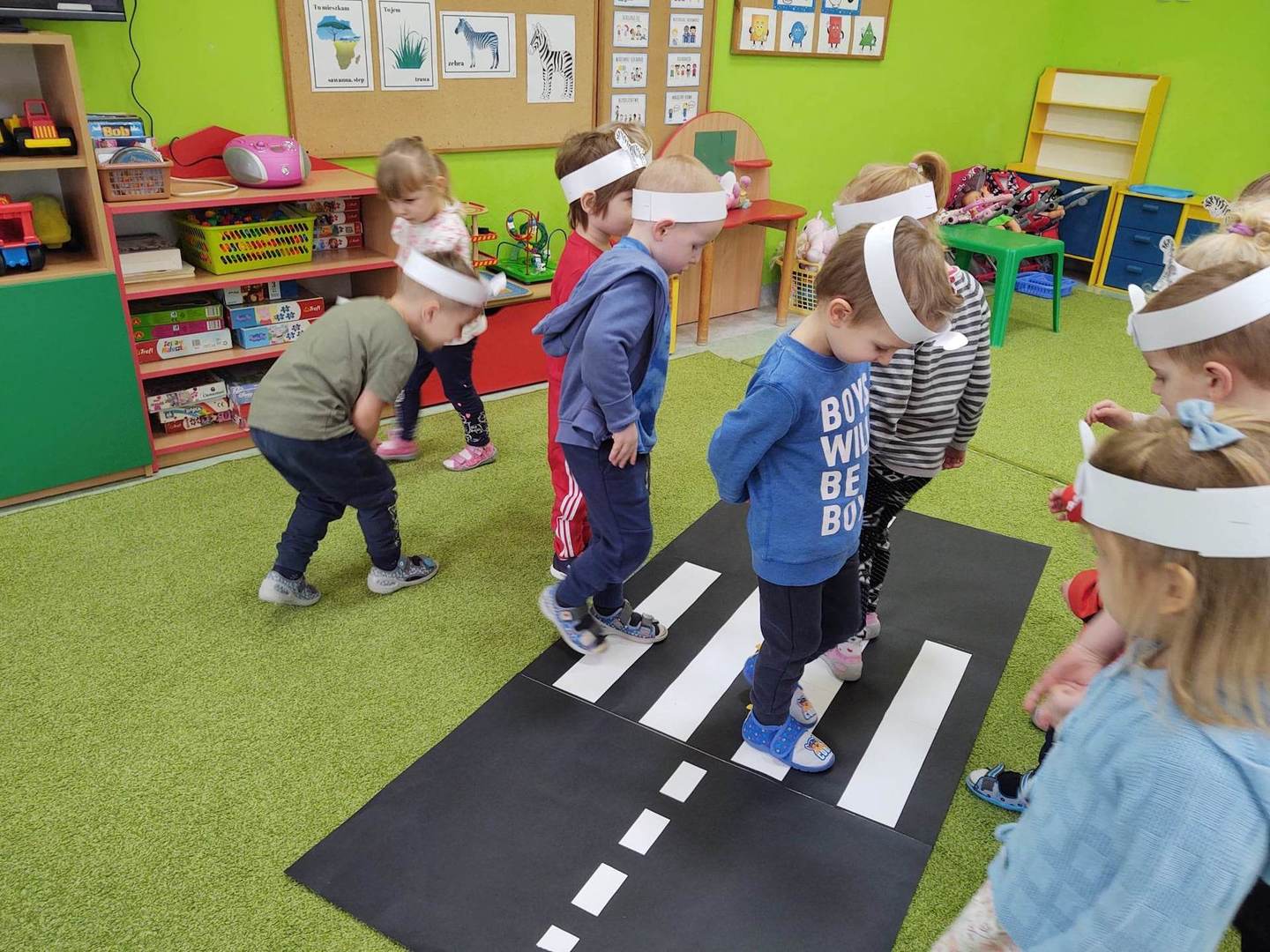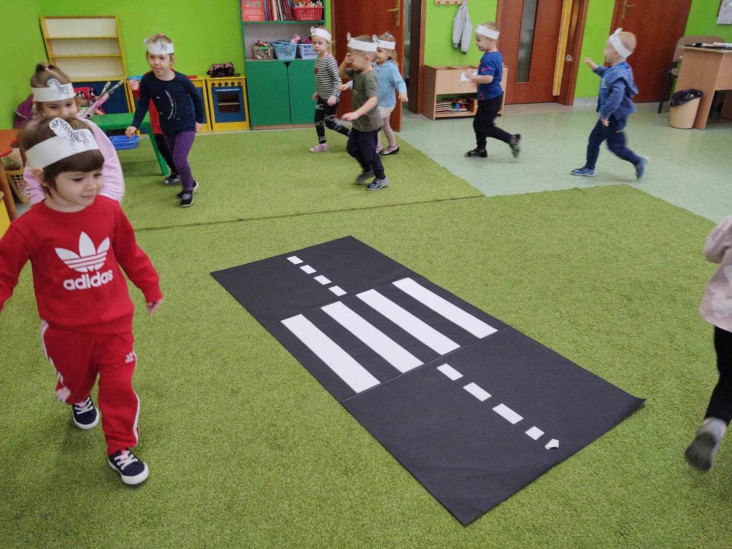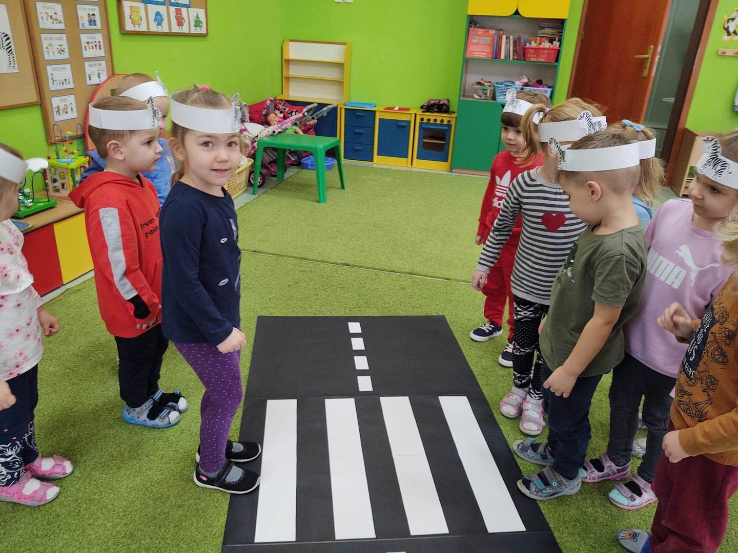 31 stycznia dzieci z grupy „Pszczółki” obchodziły kolejne nietypowe święto – DZIEŃ ZEBRY. Przedszkolaki z wielkim zaciekawieniem obejrzały film edukacyjny „Poznajemy zebry”, podczas którego otrzymały odpowiedź na pytanie „Po co zebra ma paski?” oraz dowiedziały się, iż nie ma dwóch identycznych zebr. Przypomniały sobie również inne znaczenie słowa „zebra” podczas zabawy ruchowej wcielając się w role pieszych.