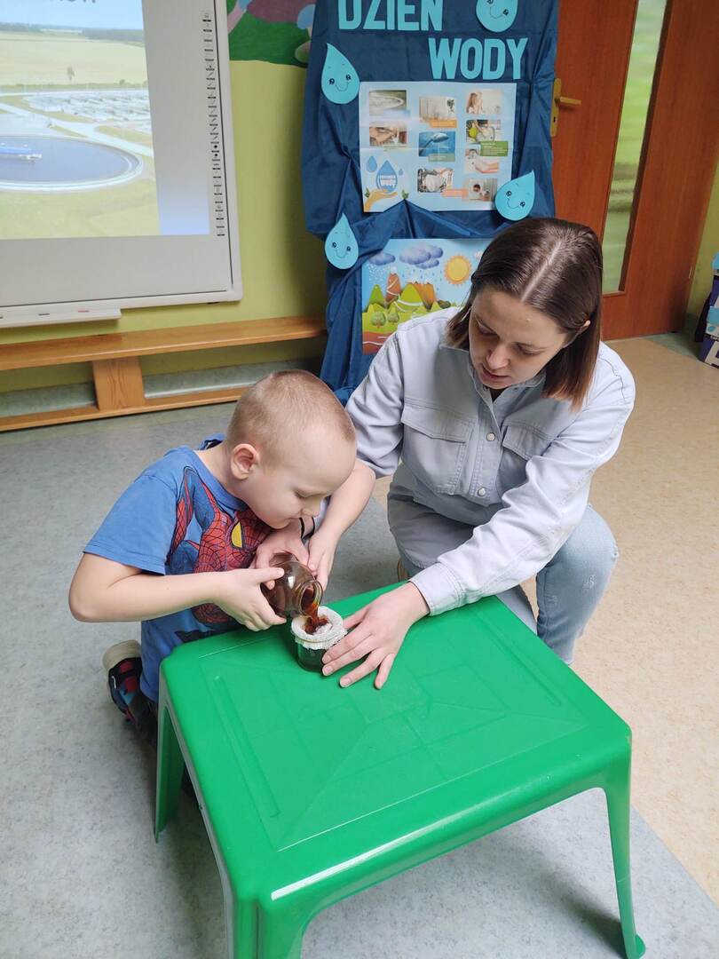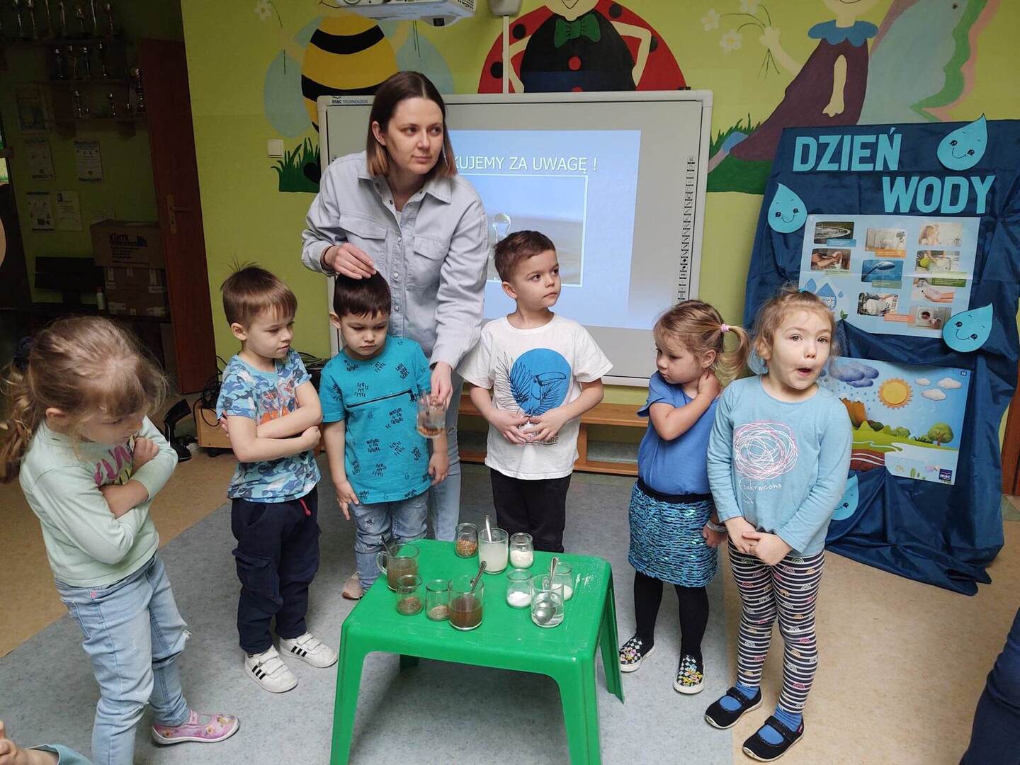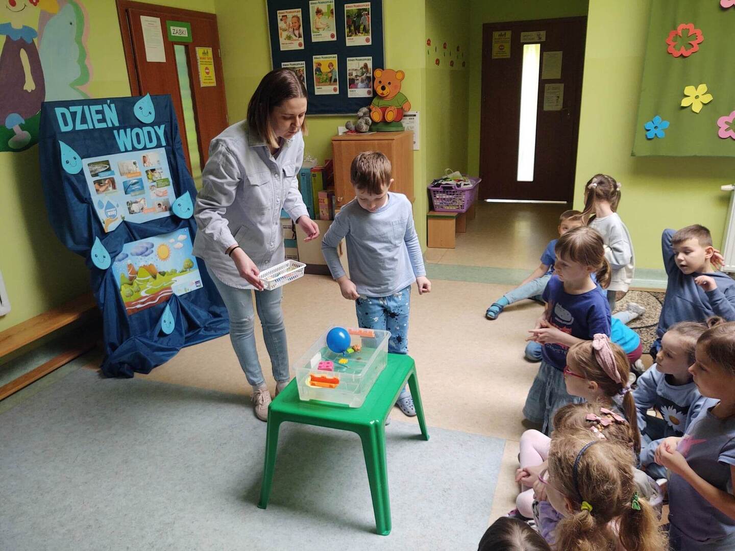 22 marca obchodziliśmy Dzień Wody. Ten dzień miał na celu rozwijanie zainteresowań dzieci o otaczającym je świecie oraz uświadomienie znaczenia wody dla życia i zdrowia ludzi, zwierząt i roślin. Dzieci rozwiązywały zagadki słuchowe, poznały stany skupienia wody oraz obieg wody w przyrodzie, brały też udział w zabawach badawczych. Dowiedziały się dlaczego oszczędzanie wody jest ważne i w jaki sposób można wodę oszczędzać na co dzień. Wszystkie przedszkolaki już wiedzą, że woda jest niezbędnym źródłem życia i należy o nią dbać, a więc nie marnujmy WODY!.