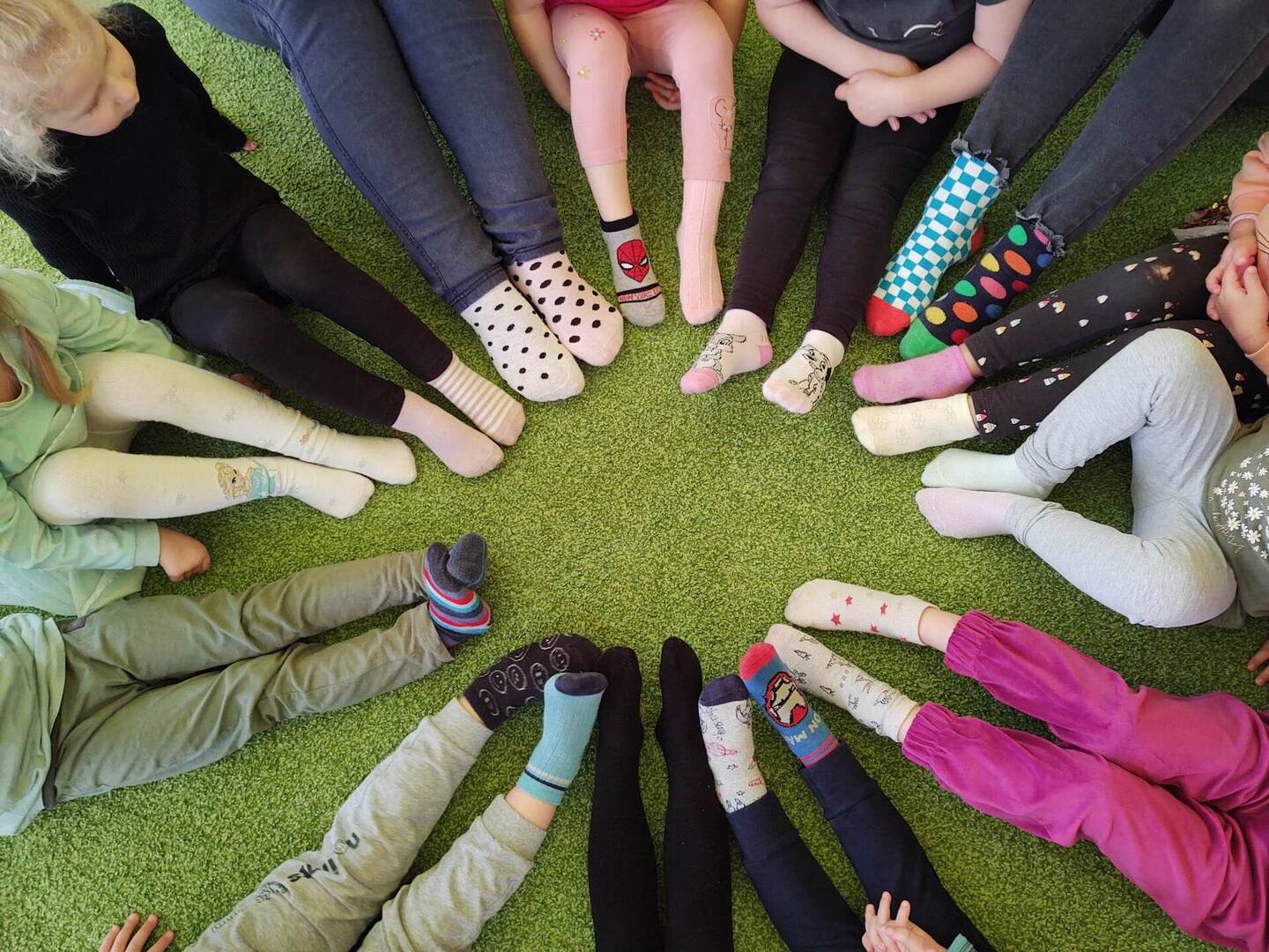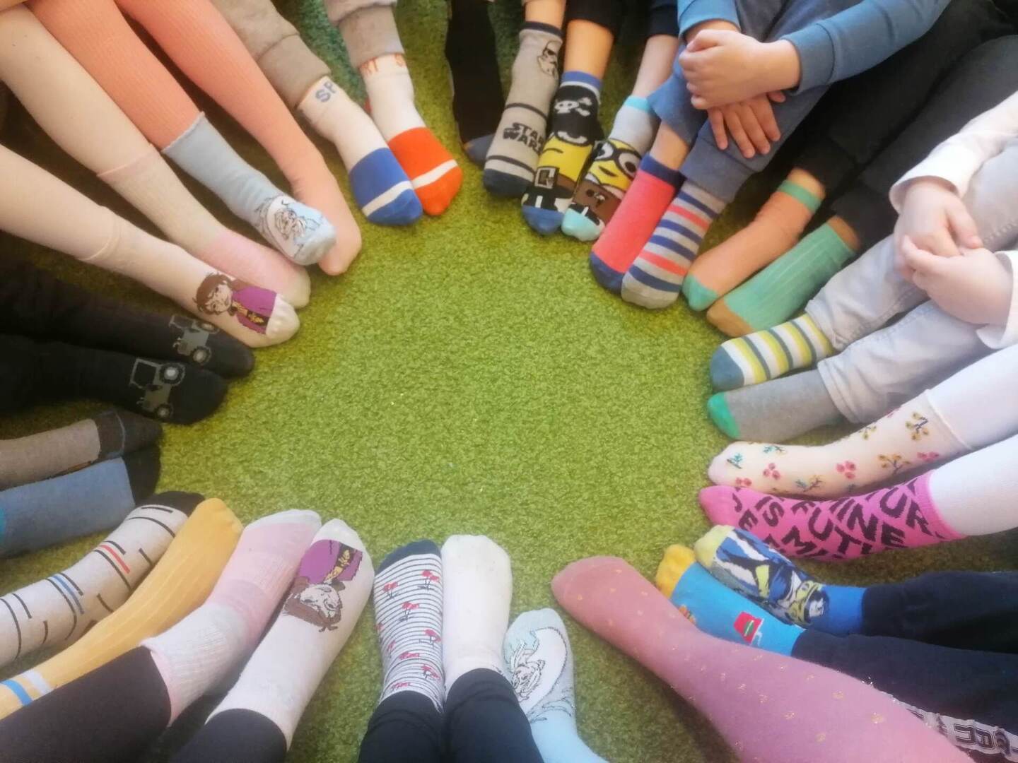 21 marca jest kolorowy nie tylko z powodu pierwszego dnia wiosny! To właśnie tego dnia obchodzony jest Światowy Dzień Zespołu Downa i na znak wsparcia dla osób z Zespołem Downa ubieramy dwie różne skarpetki, które symbolizują społeczne niedopasowanie, odmienność, zróżnicowanie wszystko, z czym spotykają się osoby dotknięte Zespołem Downa. Zespół Downa to trisomia (3 chromosomy) na dwudziestej pierwszej parze chromosomów - stąd wzięła się data święta! Dzieci z naszego przedszkola również przyłączyły się do tej akcji.