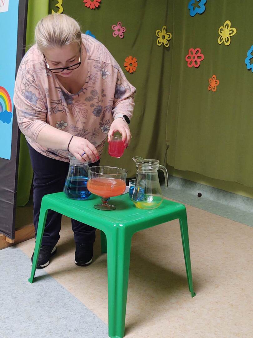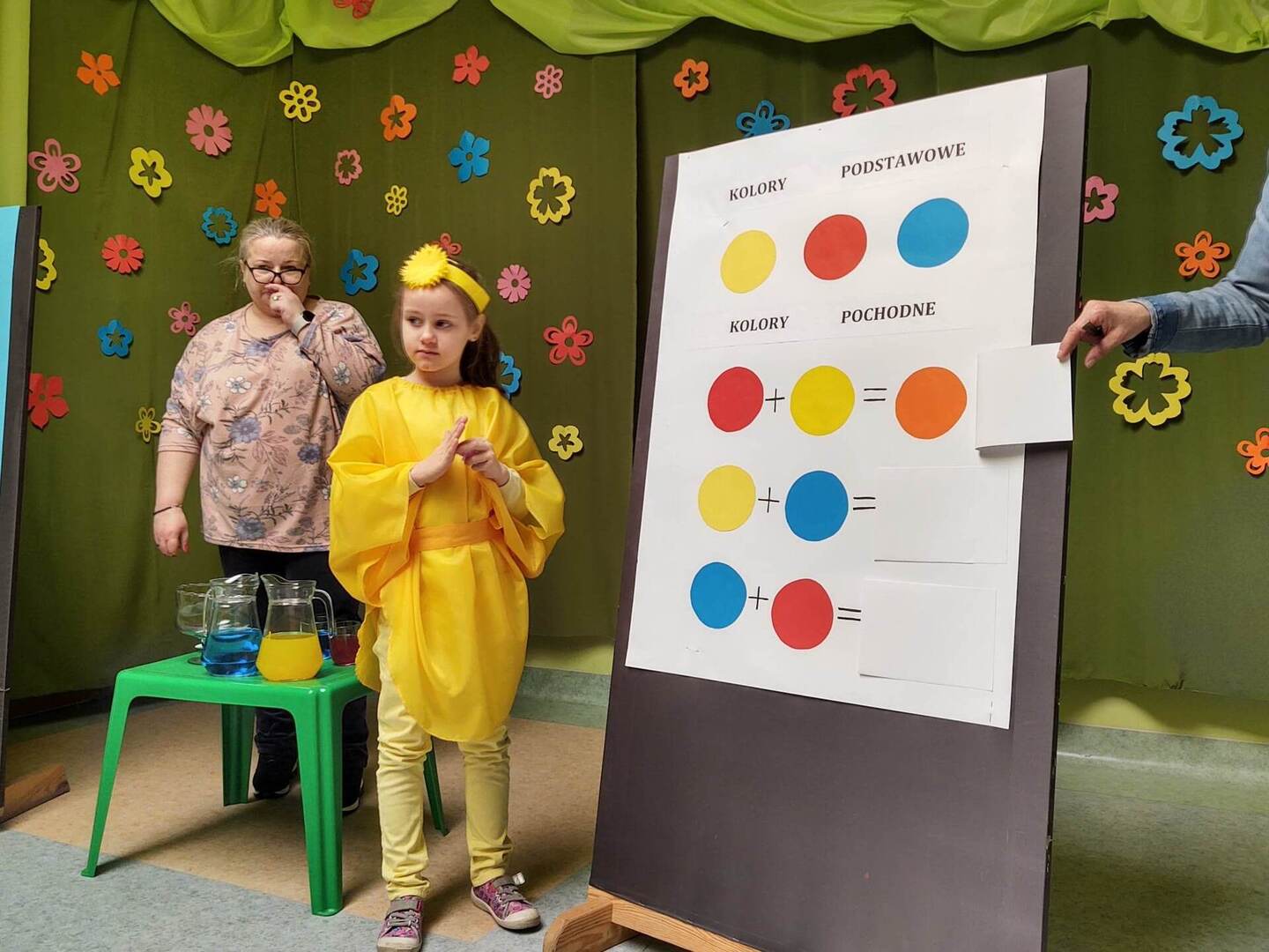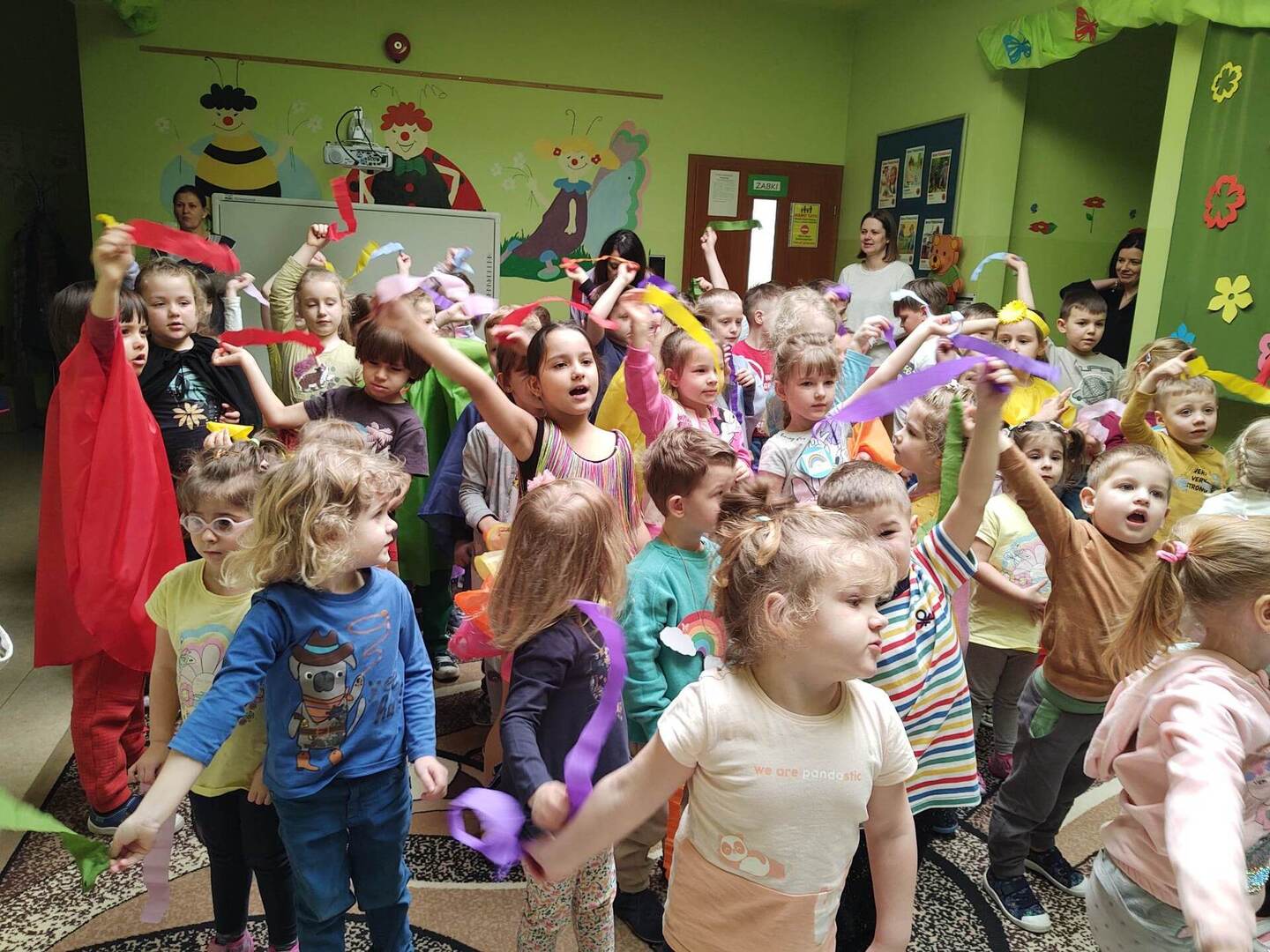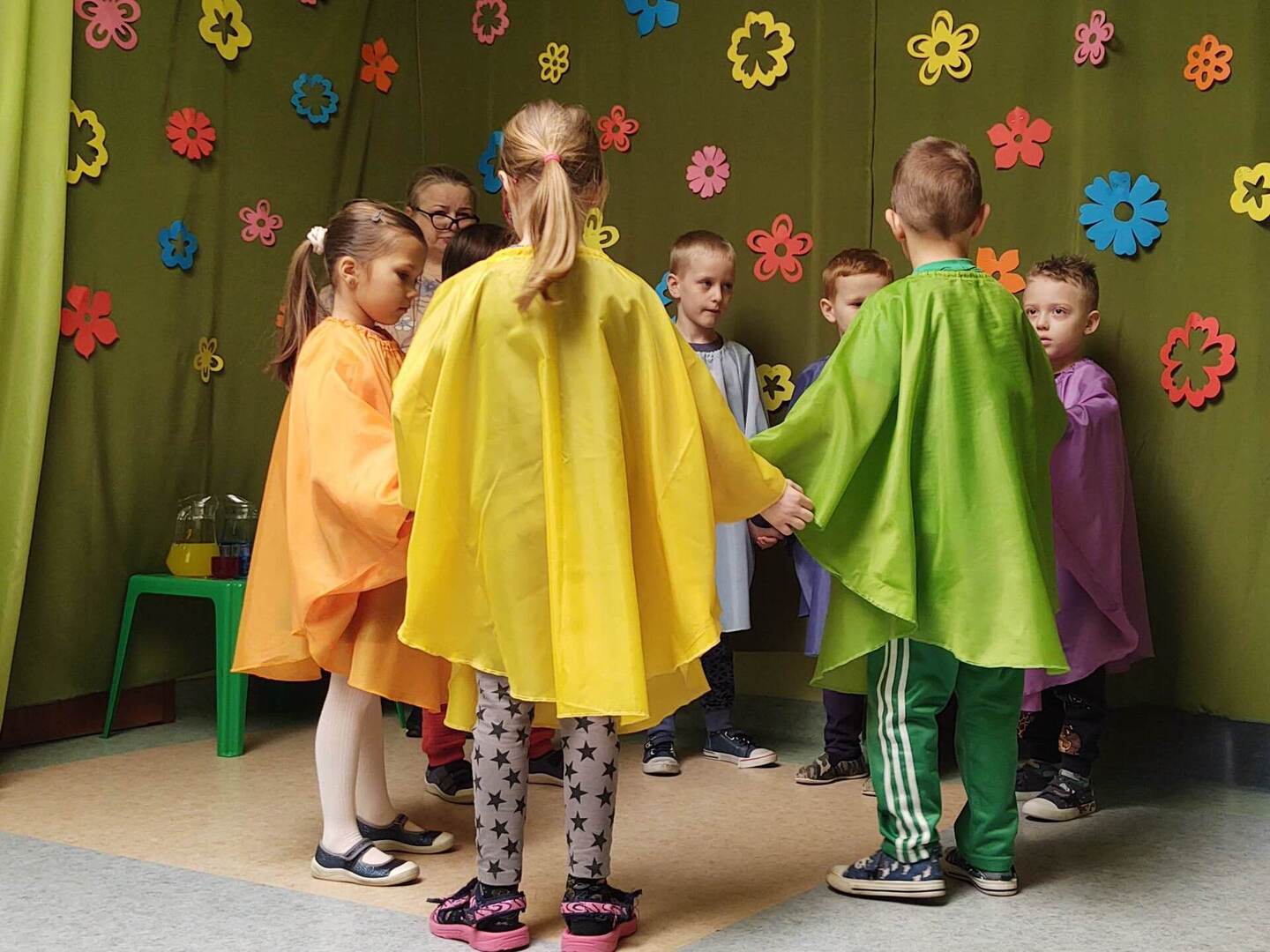 3 kwietnia w naszym przedszkolu obchodzony był DZIEŃ TĘCZY. Dzieci z grupy "Stokrotki" zaprezentowały inscenizację wiersza "Historia tęczy", dzięki której przedszkolaki utrwaliły wszystkie kolory siedmiobarwnego łuku i przekonały się, że w przyrodzie każdy kolor jest bardzo ważny i potrzebny a wszystkie razem tworzą niepowtarzalnie piękne zjawisko na niebie. Były też eksperymenty, podczas których sprawdzaliśmy jak powstają kolory pochodne z połączenia barw podstawowych. Na zakończenie tego wyjątkowego i kolorowego dnia Amelka, zatańczyła cza-czę do piosenki "Tęcza".