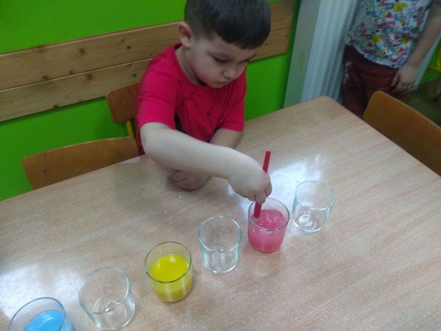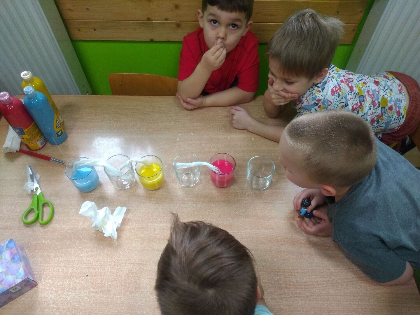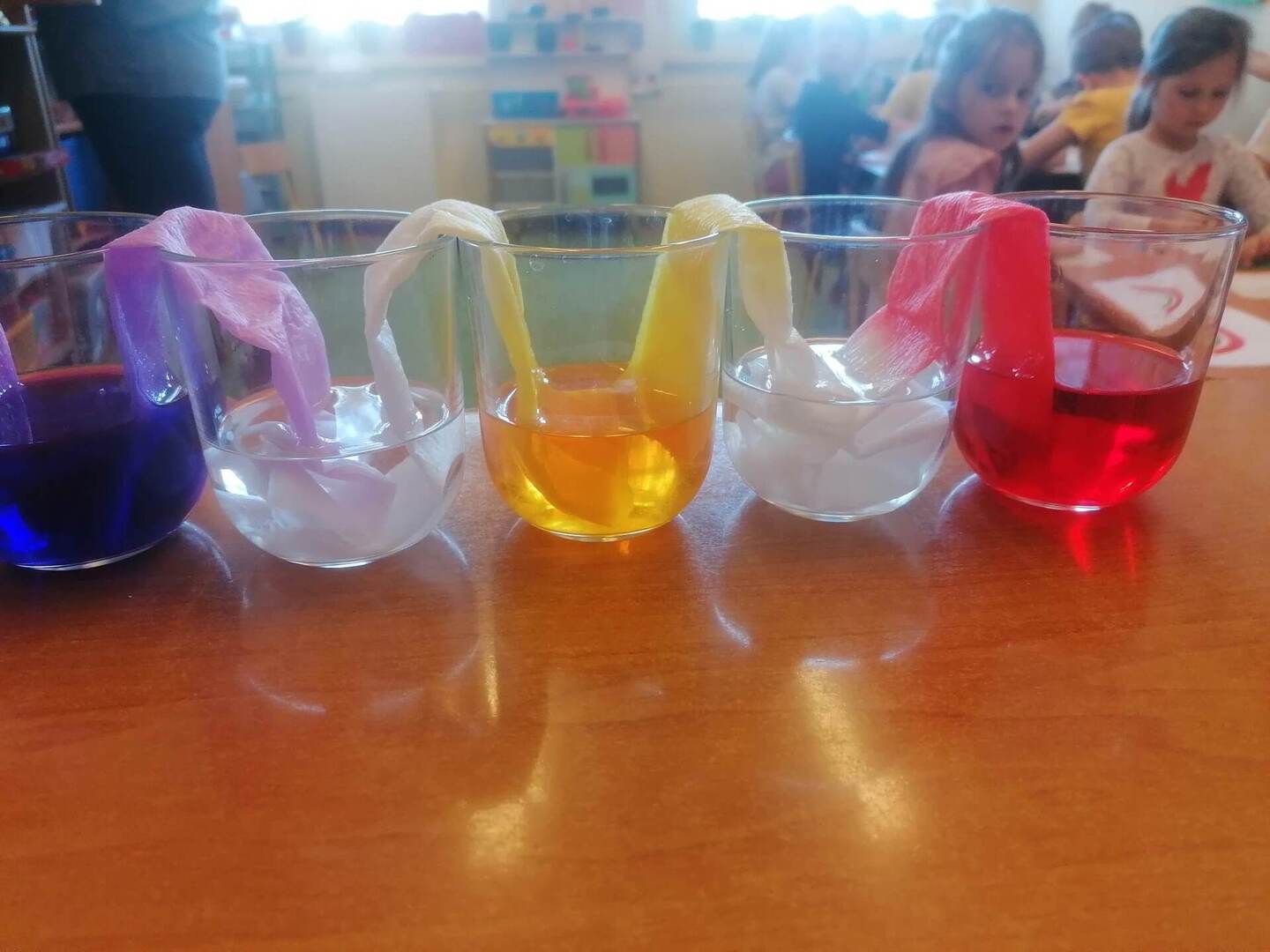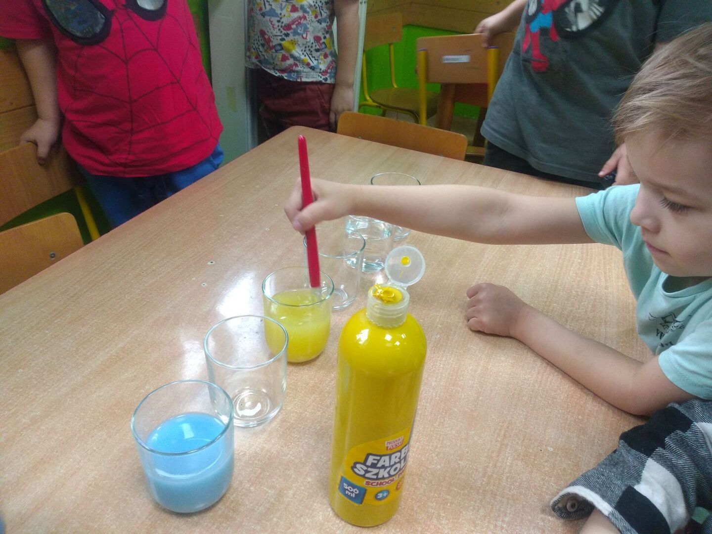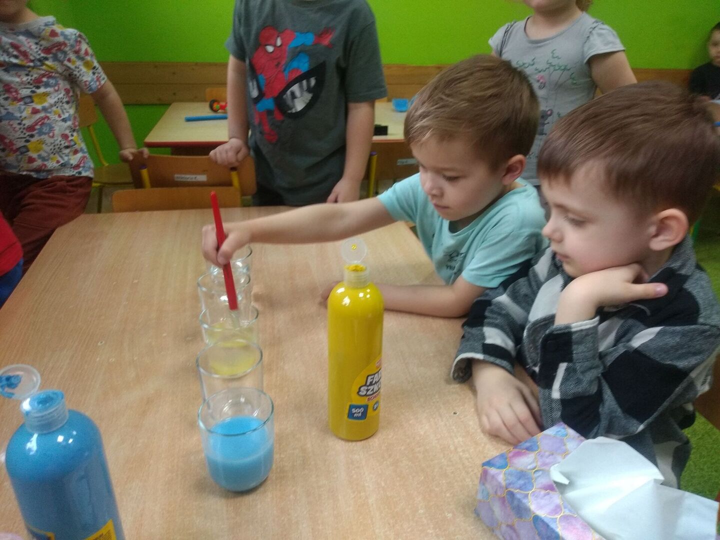 - Dzieci z grupy „Żabki” podziwiały „wędrujące kolory”.