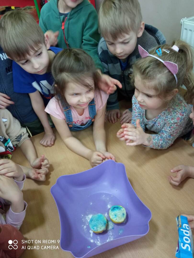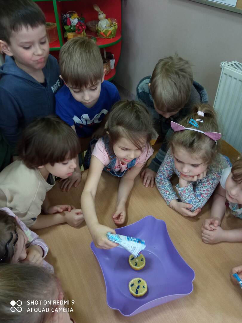 - Dzieci z grupy "Motylki” eksperymentowały z „pienistą cytryną” i obserwowały rozwijające się kwiatki.
