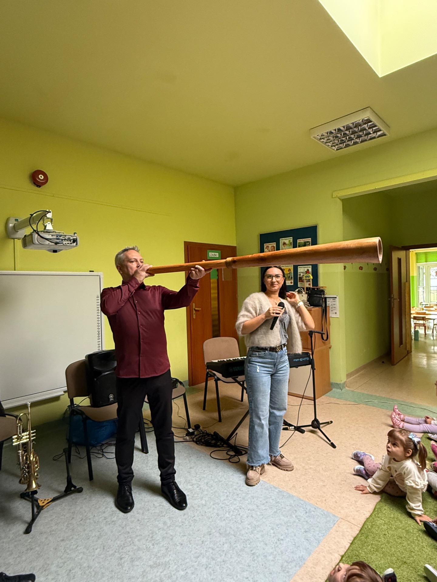 23 września przedszkolaki wzięły udział w wyjątkowej audycji muzycznej, której bohaterem była trąbka. Spotkanie miało na celu przybliżenie dzieciom tego instrumentu oraz pokazanie, jak różnorodny i ciekawy może być świat muzyki. Podczas audycji dzieci dowiedzieły się m.in., czy można trąbić bez ustnika, poznały instrument o nazwie kazu, a także niezwykłe brzmienie instrumentu rdzennych Aborygenów z Australii. Nie zabrakło również wspólnej zabawy przy znanej melodii "La Cucaracha".