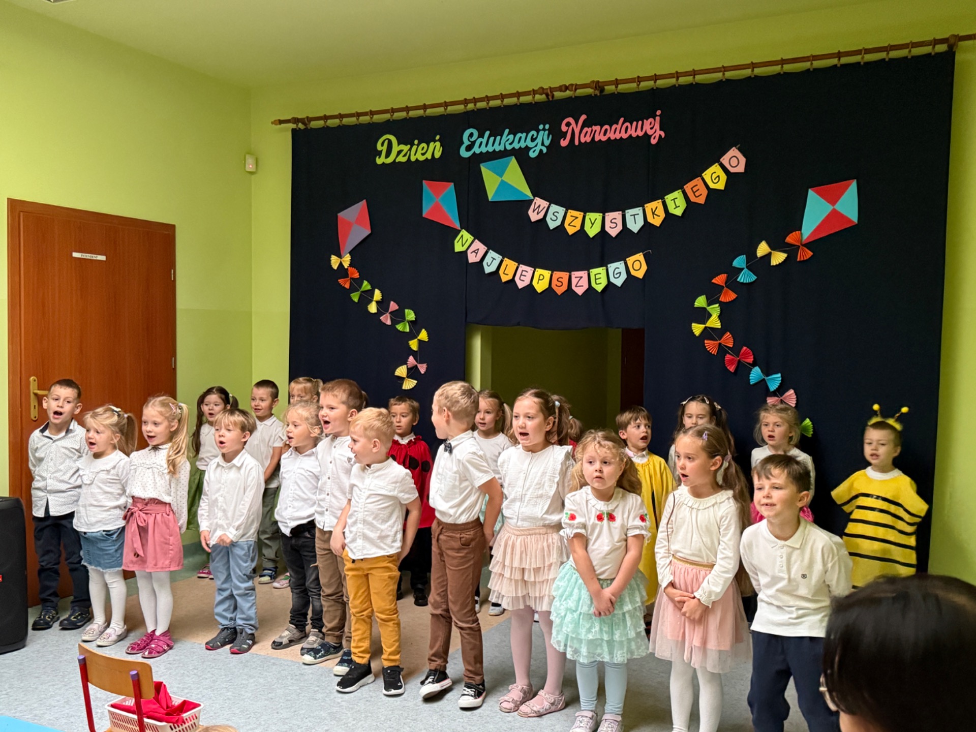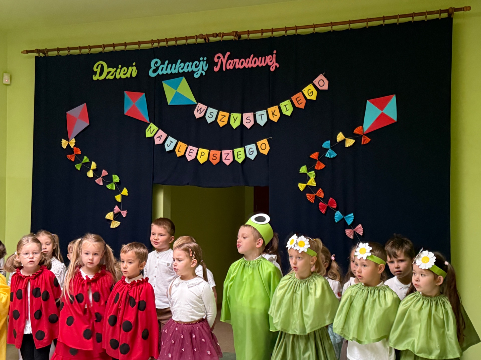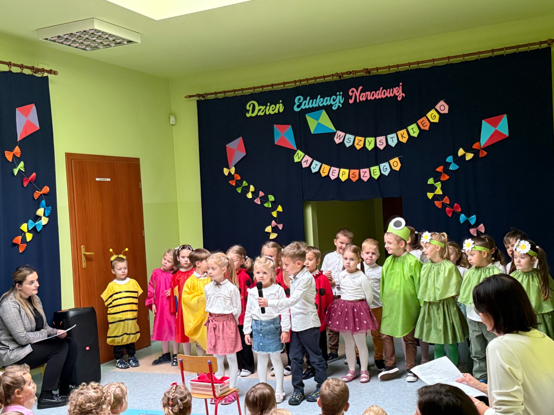14 października w naszym przedszkolu odbyła się uroczystość z okazji DNIA EDUKACJI NARODOWEJ. W ten niezwykły dzień dzieci z grupy "Biedronki" poprzez wiersze, piosenki i taniec wyraziły płynącą prosto z serca swoją wdzięczność wychowawcom i opiekunom za miłość, serce, opiekę i trud włożony w ich wychowanie i edukację. Każde słowo wypowiedziane przez „małych artystów" wzbudzało zachwyt i wzruszenie na twarzach zgromadzonych gości.