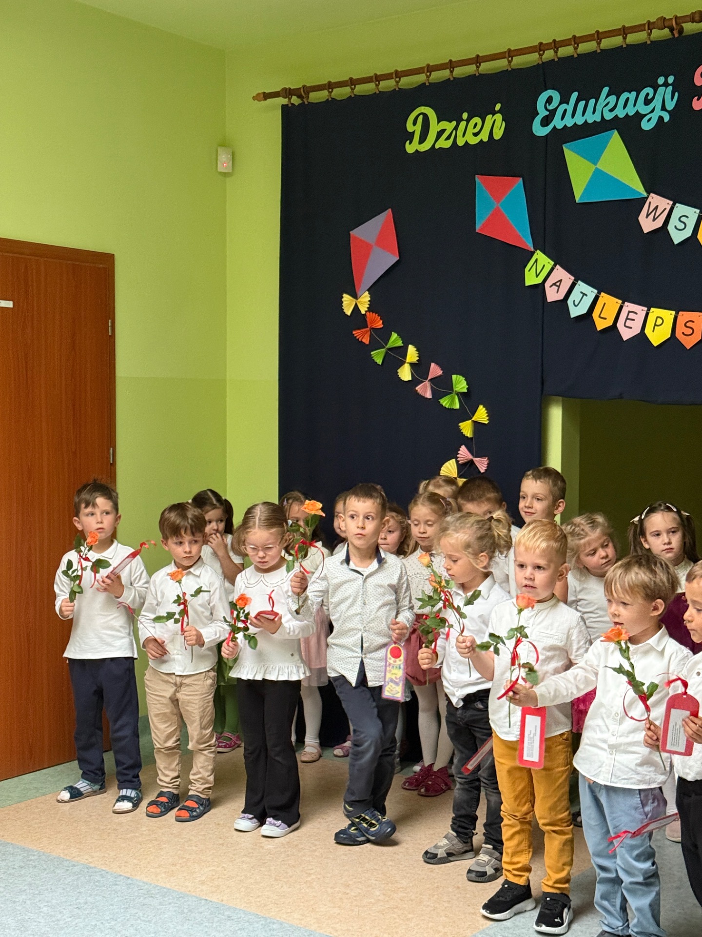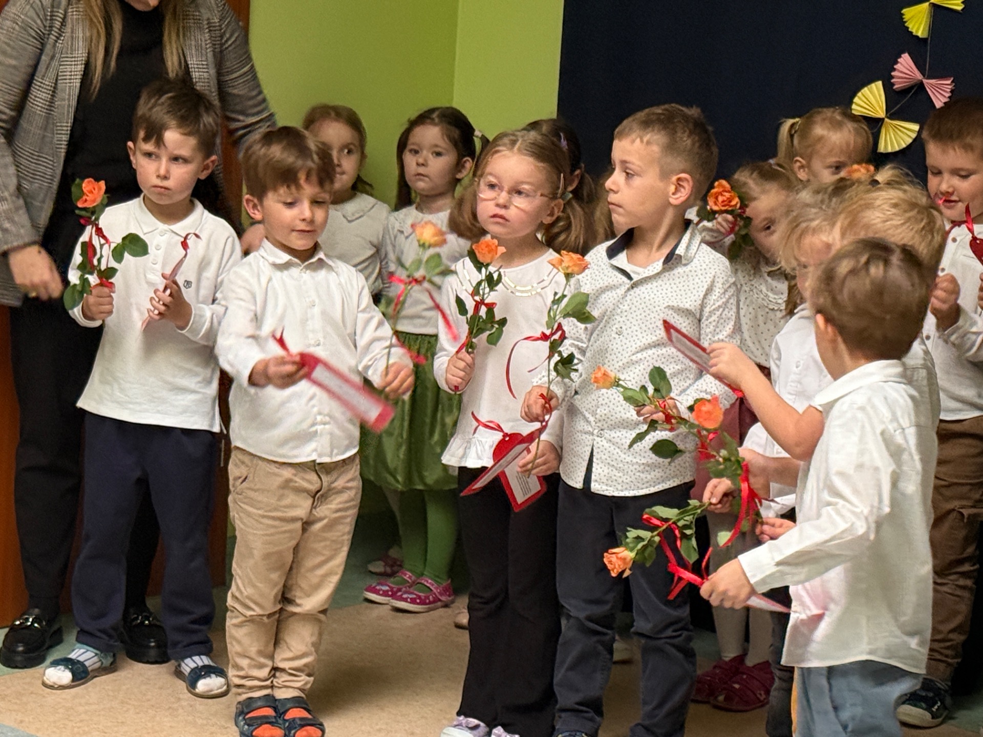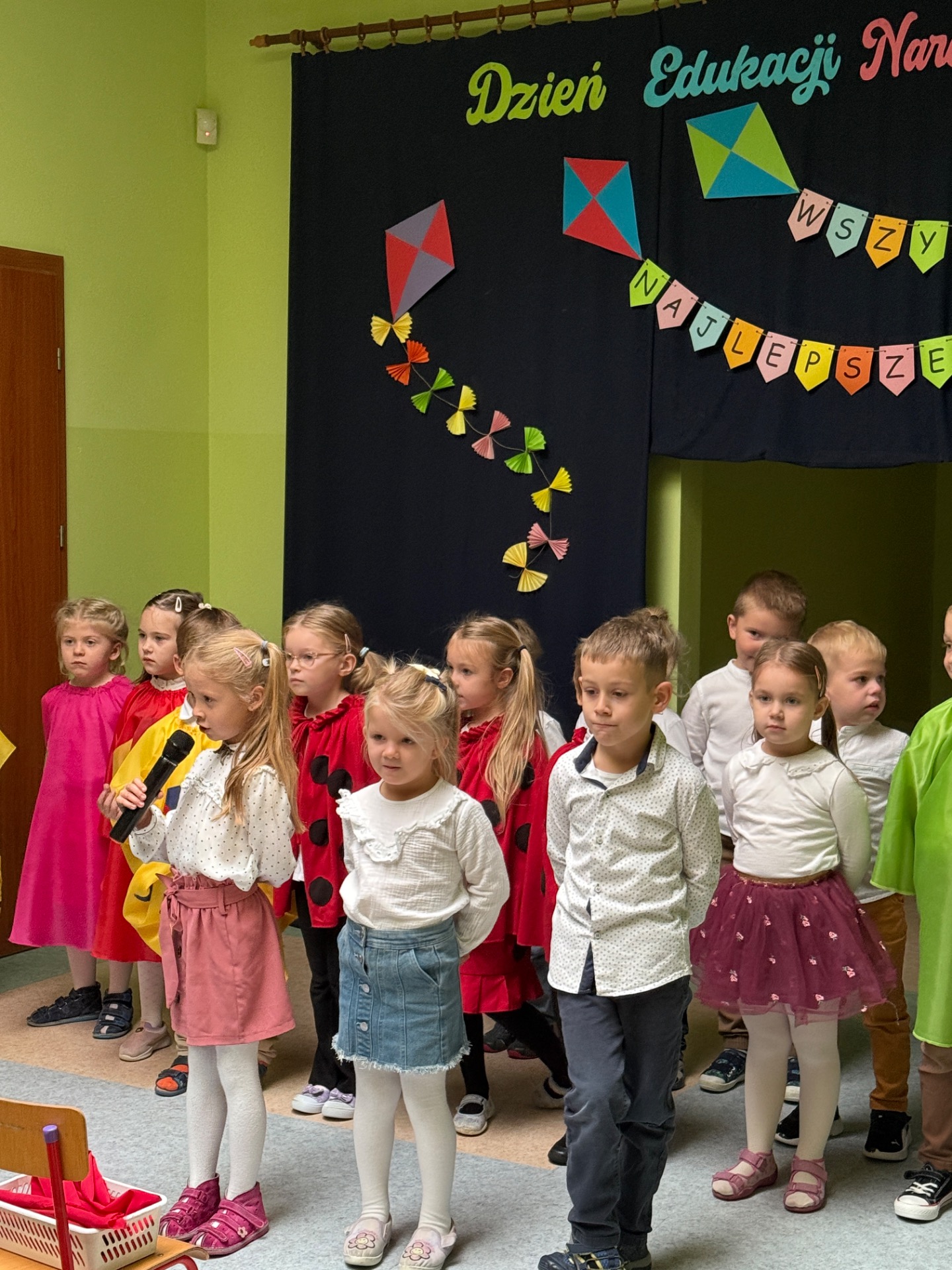 14 października w naszym przedszkolu odbyła się uroczystość z okazji DNIA EDUKACJI NARODOWEJ. W ten niezwykły dzień dzieci z grupy "Biedronki" poprzez wiersze, piosenki i taniec wyraziły płynącą prosto z serca swoją wdzięczność wychowawcom i opiekunom za miłość, serce, opiekę i trud włożony w ich wychowanie i edukację. Każde słowo wypowiedziane przez „małych artystów" wzbudzało zachwyt i wzruszenie na twarzach zgromadzonych gości.