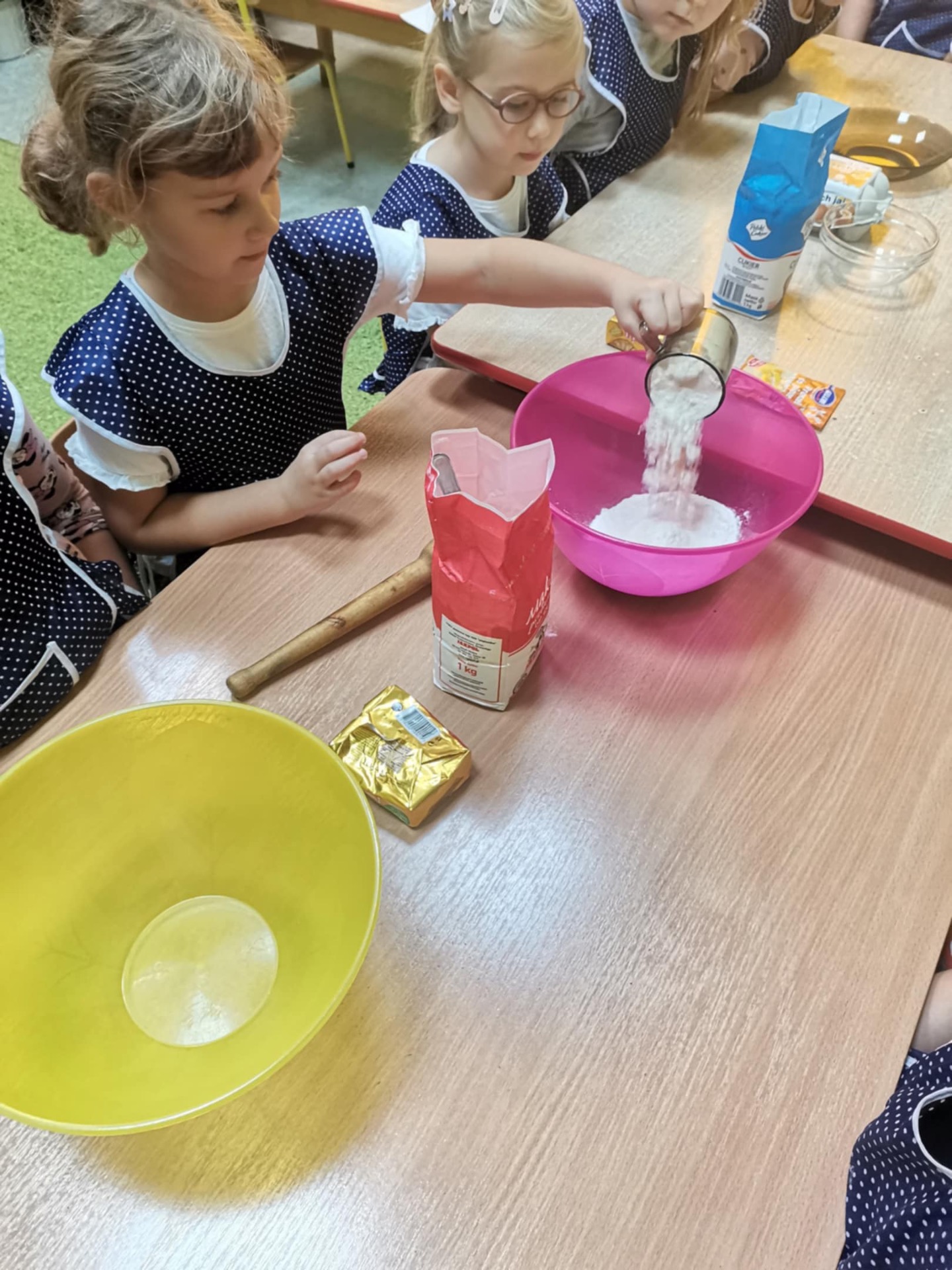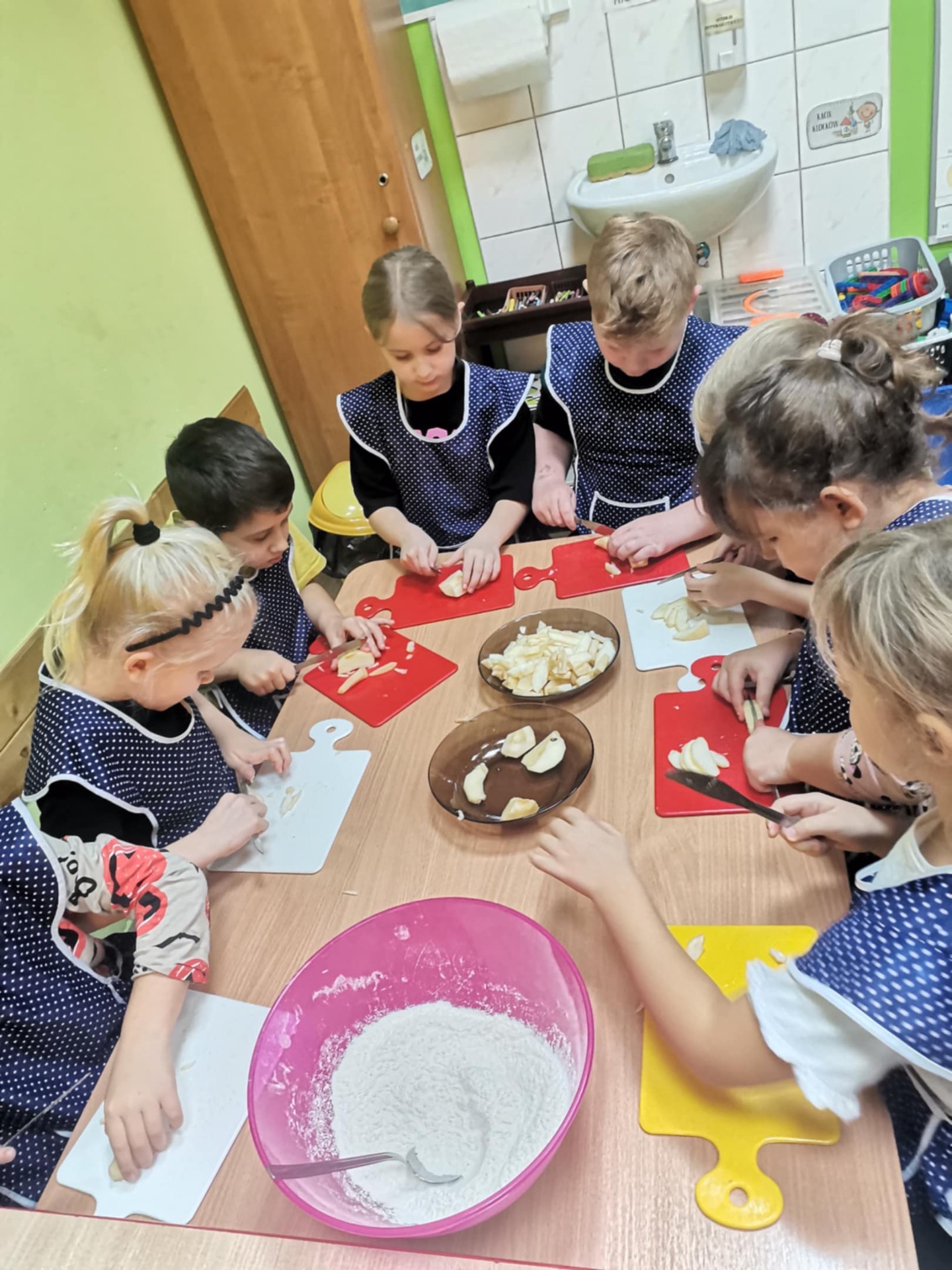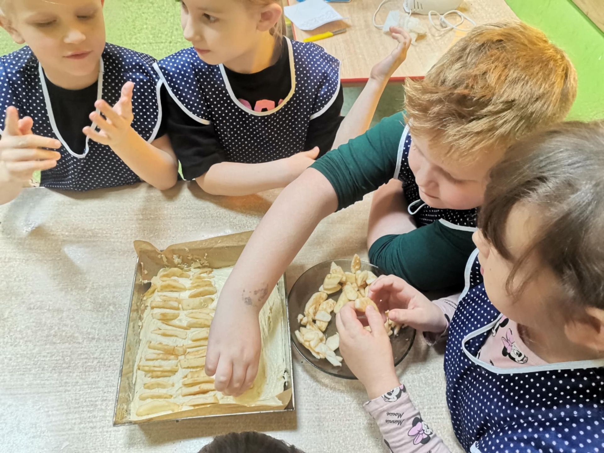 Natomist dzieci z grupy "Żabki" wykonały ciasto z owocami "Według przepisu babci".