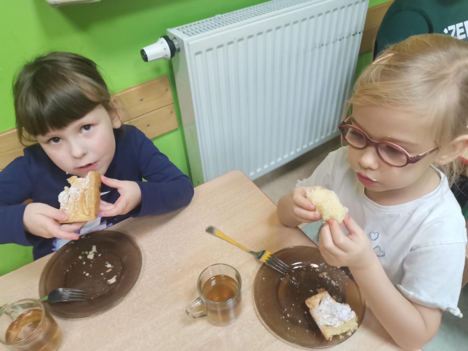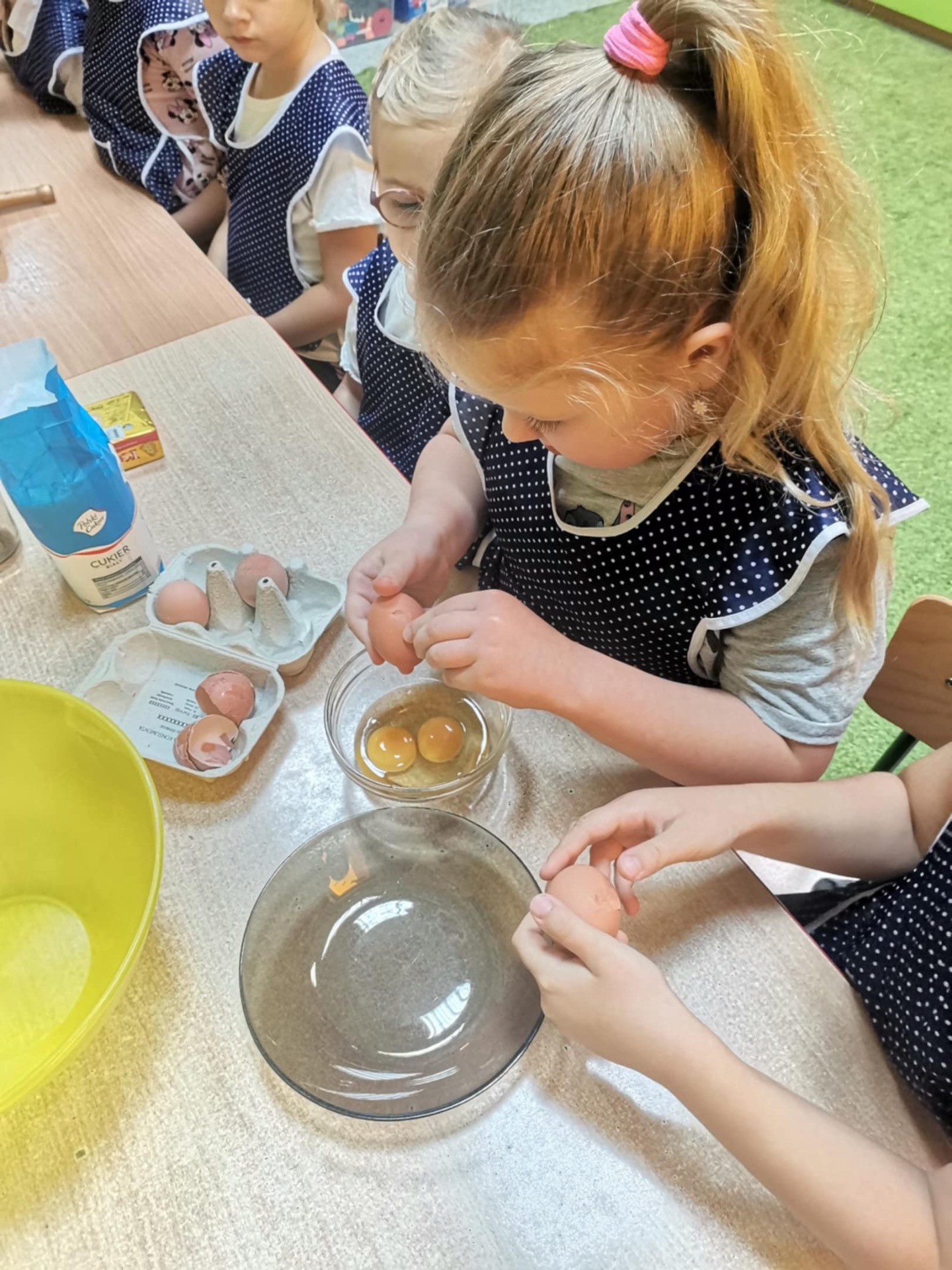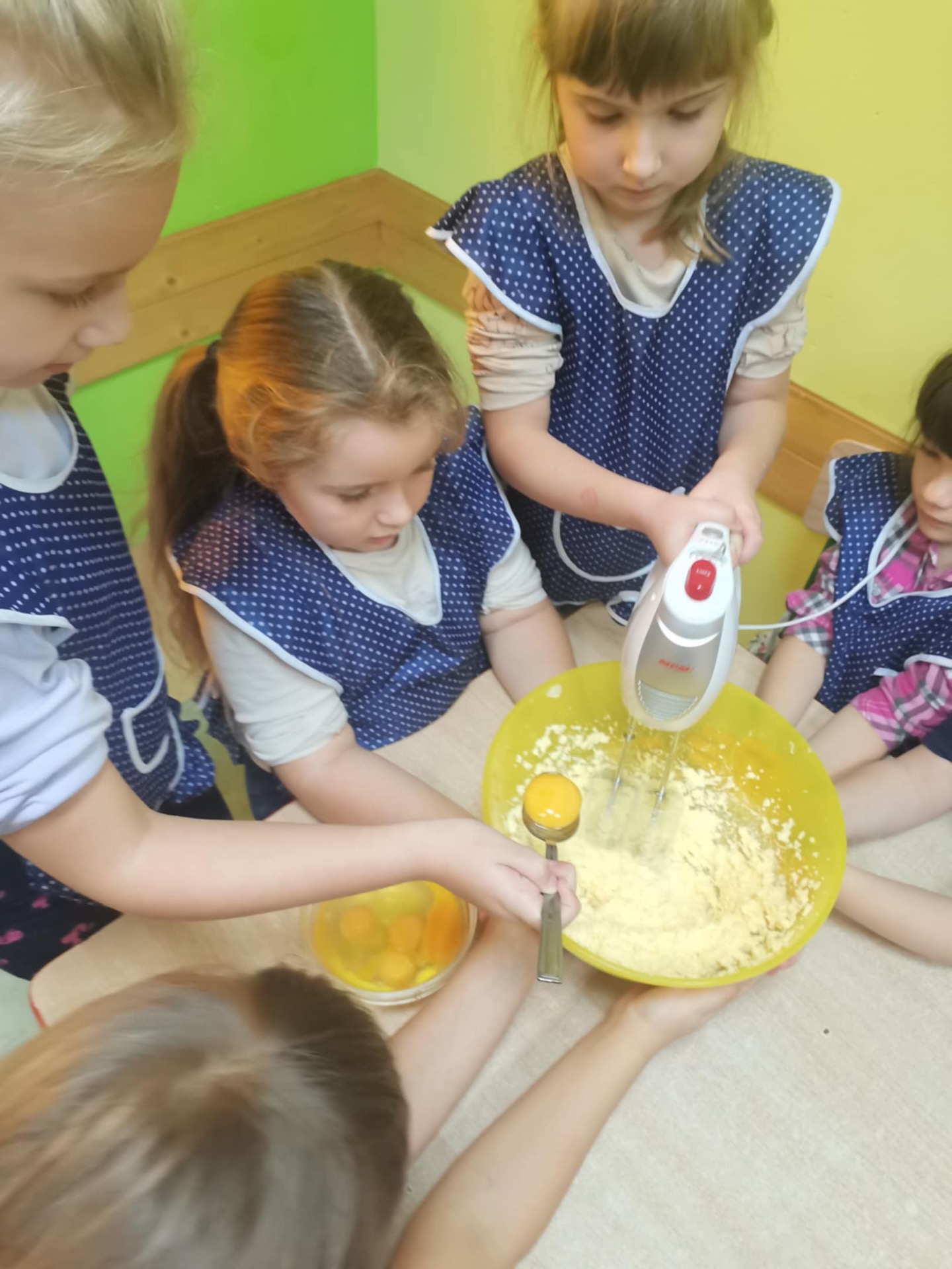 Natomist dzieci z grupy "Żabki" wykonały ciasto z owocami "Według przepisu babci".
