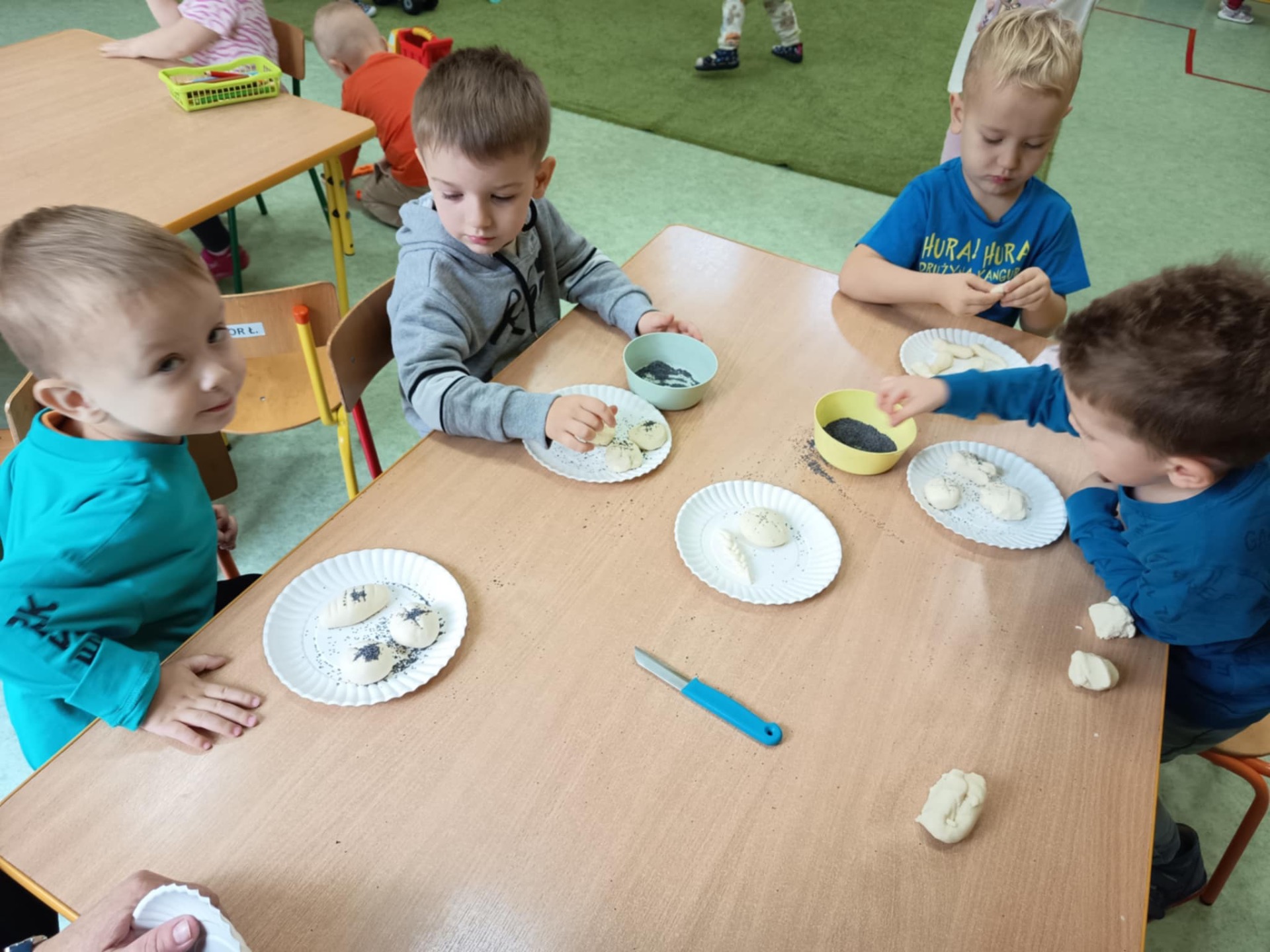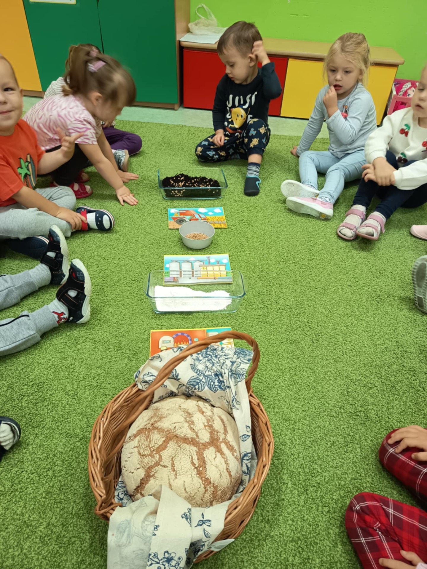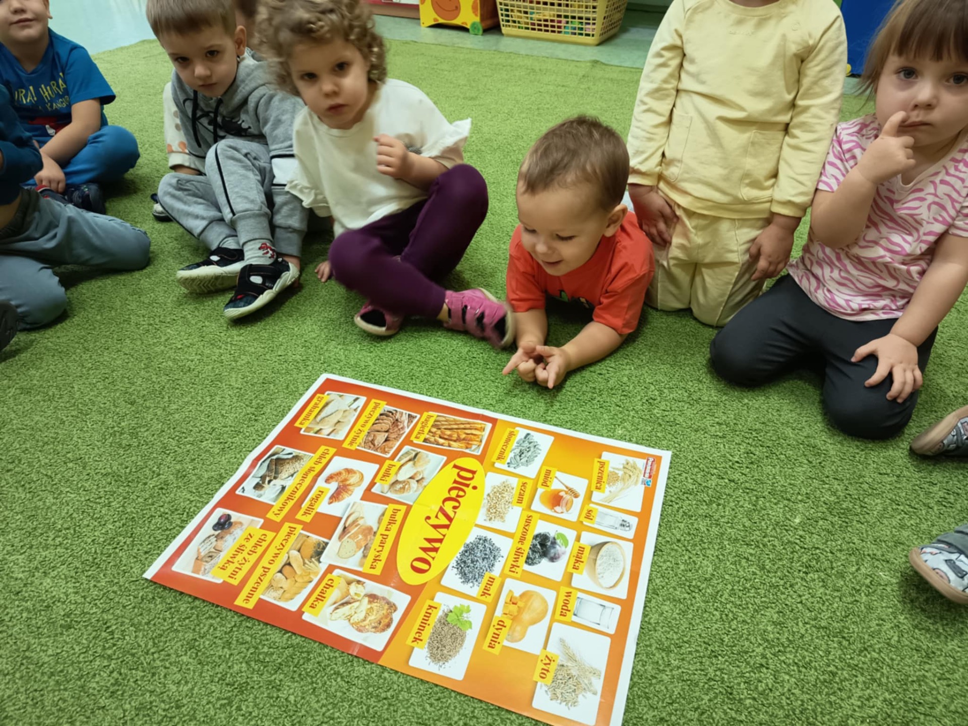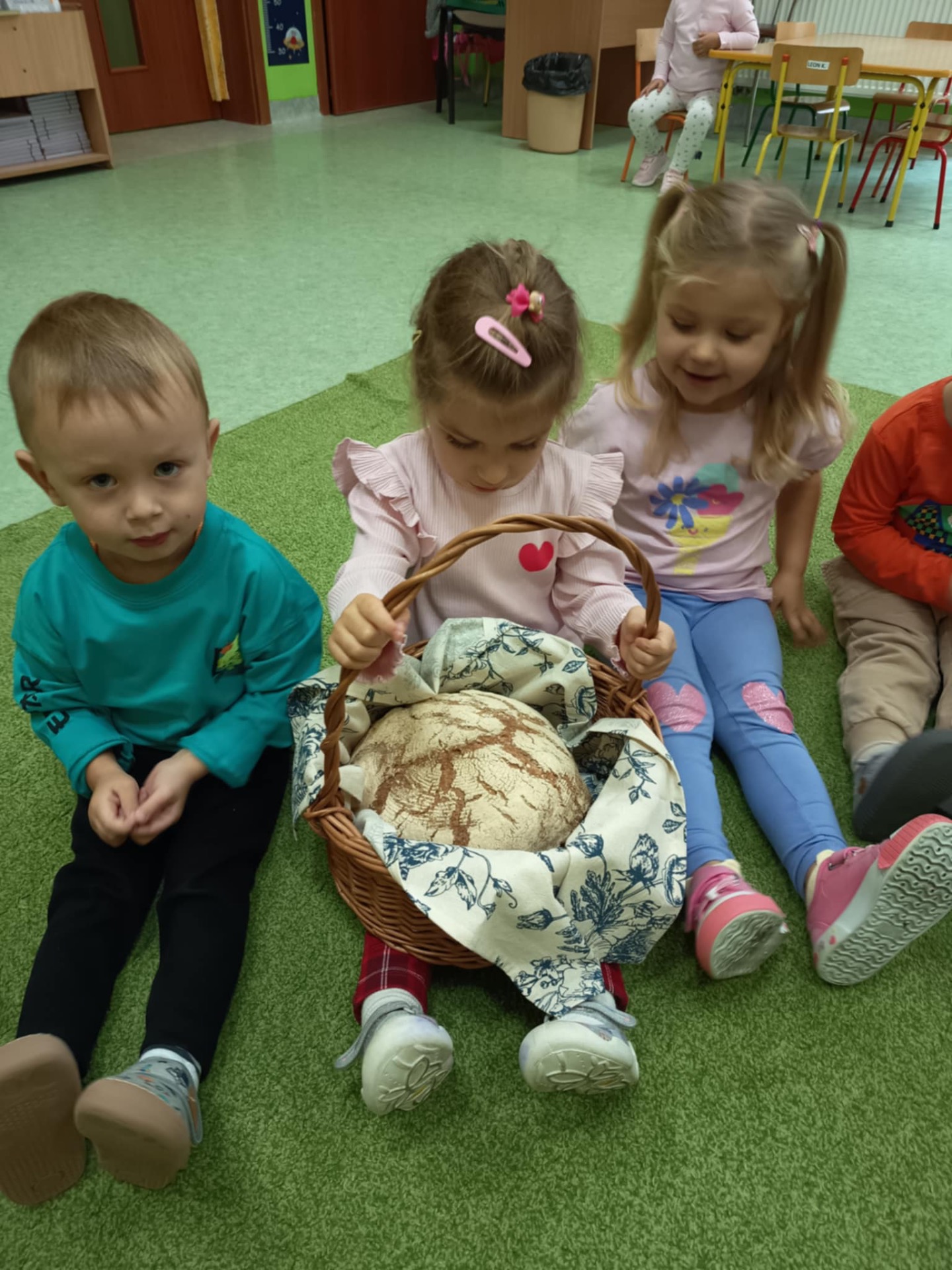 Grupa "Pszczółki" obchodziła Dzień Chleba ". Przedszkolaki poznały znaczenie chleba w naszej kulturze i tradycji, poznały etapy produkcji chleba na podstawie wiersza i historyjki obrazkowej "Od ziarenka do bochenka". Uczestniczyły również w różnych zabawach ruchowych i dydaktycznych z wykorzystaniem emblematów pieczywa.