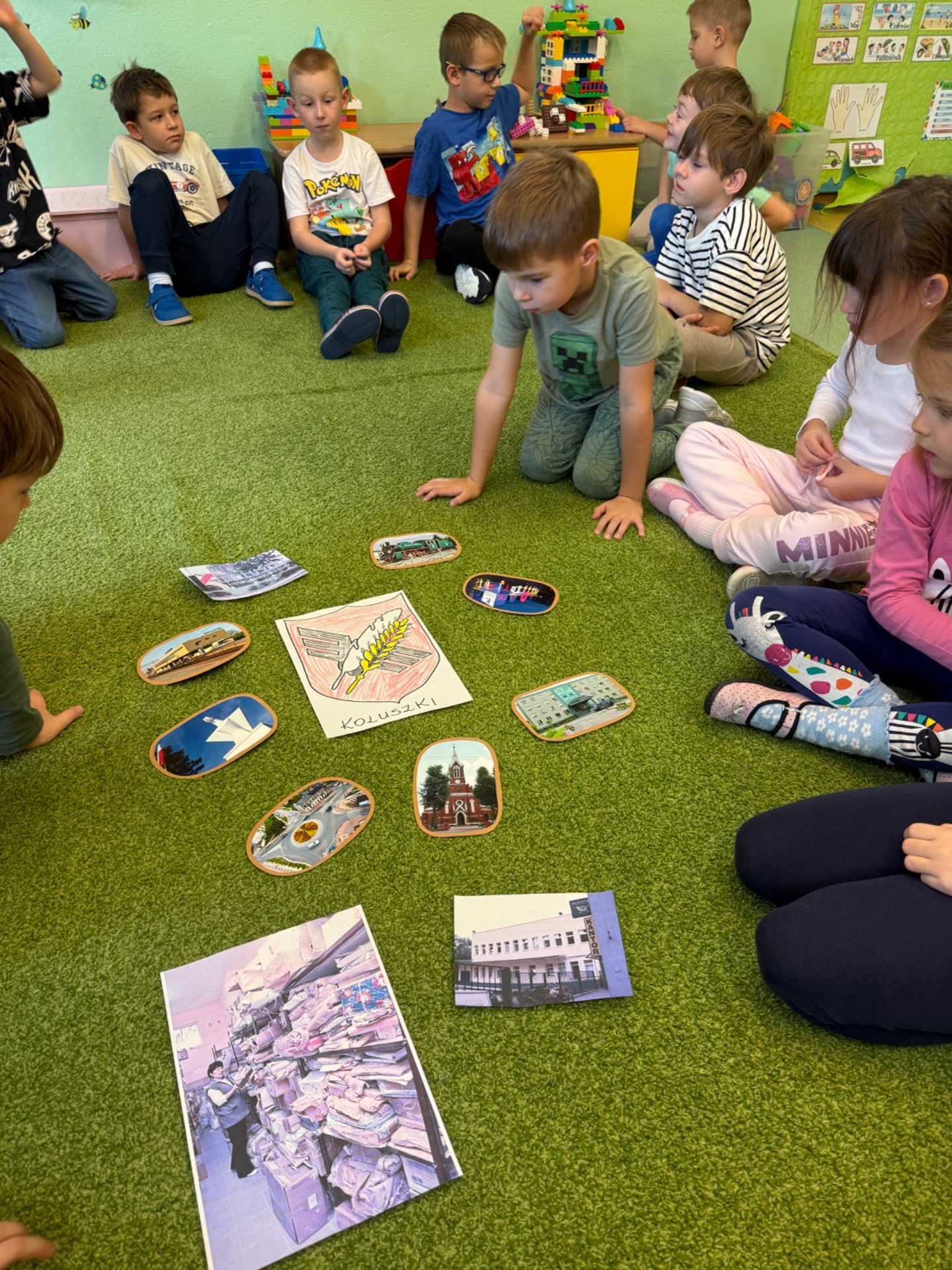 Dzieci z grupy "Stokrotki" rozmawiały na temat swojej najbliższej okolicy. Wysłuchały legendy o Koluszkach, poznały charakterystyczne miejsca oraz herb miasta.