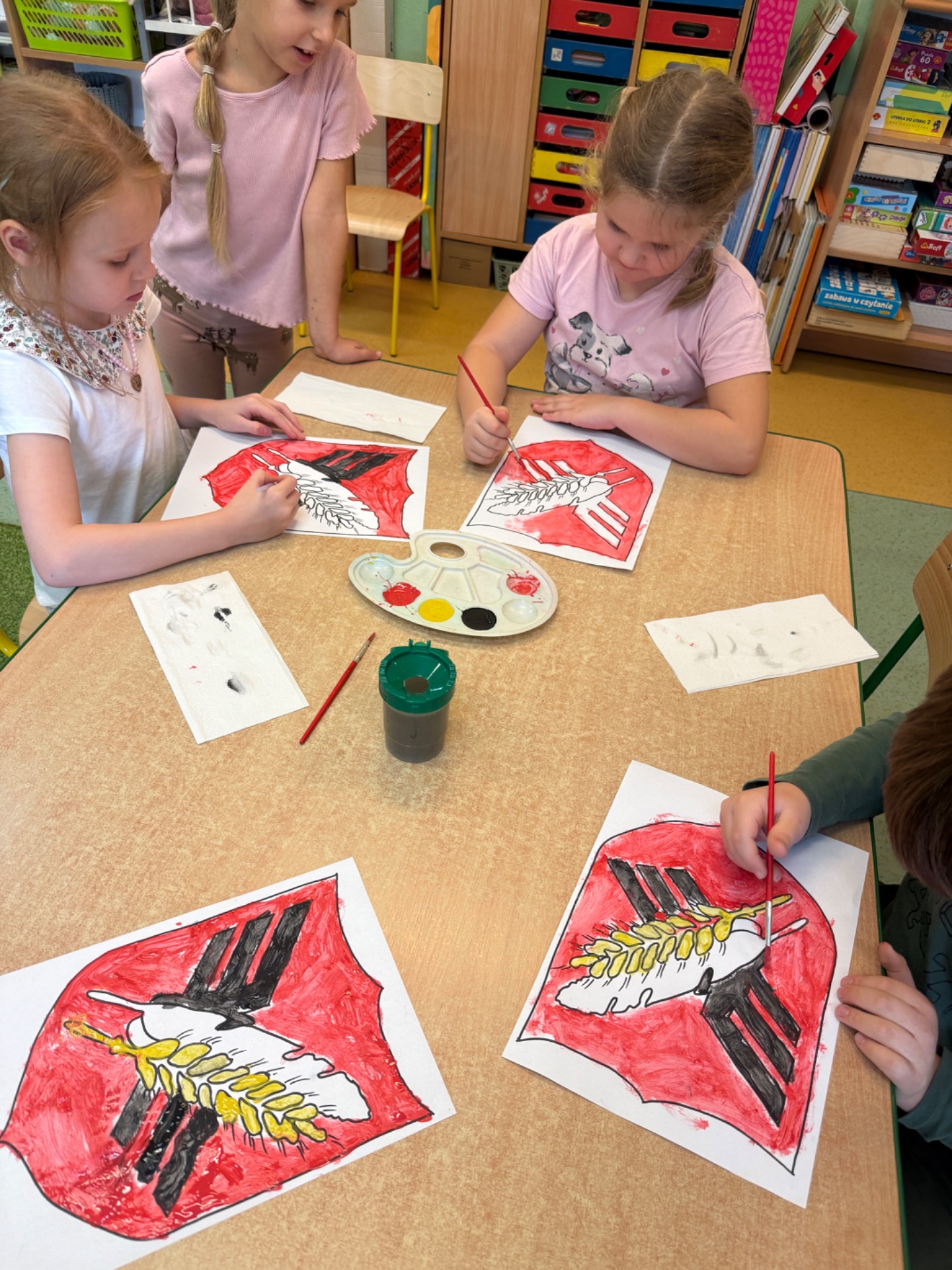 Dzieci z grupy "Biedronki" wysłuchały legendy o Lechu, Czechu i Rusie. Dowiedziały się dlaczego orzeł stał się godłem Polski. Przypomniały sobie wygląd flagi, słowa hymnu, nazywę stolicy Polski oraz najdłuższej rzeki w Polsce.